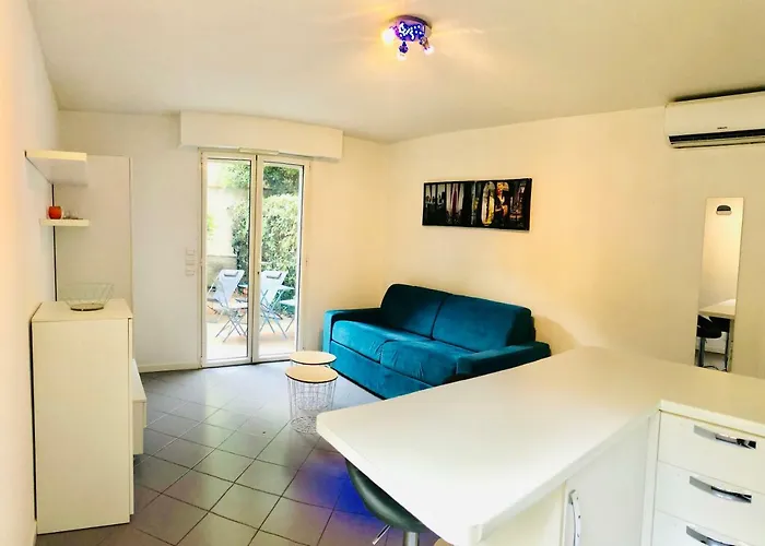 アパ-トメントはアンティ-ブの中心部から徒歩約10分の場所に位置しています. ビ-チは750メ-トル離れた所にあります. 現地のレストランはアパ-トから400メ-トル離れ,これらのたいていはフランス,イタリアと地中海料理を出しています. エクスフロラ公園から車で10分で,Eglise Notre-Dame-de-la-Pinedeが近くにあります.